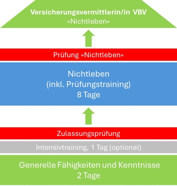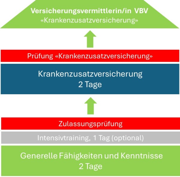 Die VAG-Zulassungsprüfung spiegelt das gesetzliche Minimum an Wissen und Können für die Versicherungs- und Vorsorgeberatung in der Schweiz. Die Qualifikationsprofile entsprechen dem Bildungs-Mindeststandard und sind von der Eidgenössischen Finanzmarktaufsicht (Finma) und vom VBV-Branchenregister als Kenntnisnachweis für die Registrierung als Versicherungsvermittler/in anerkannt.