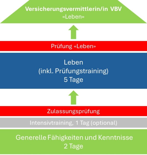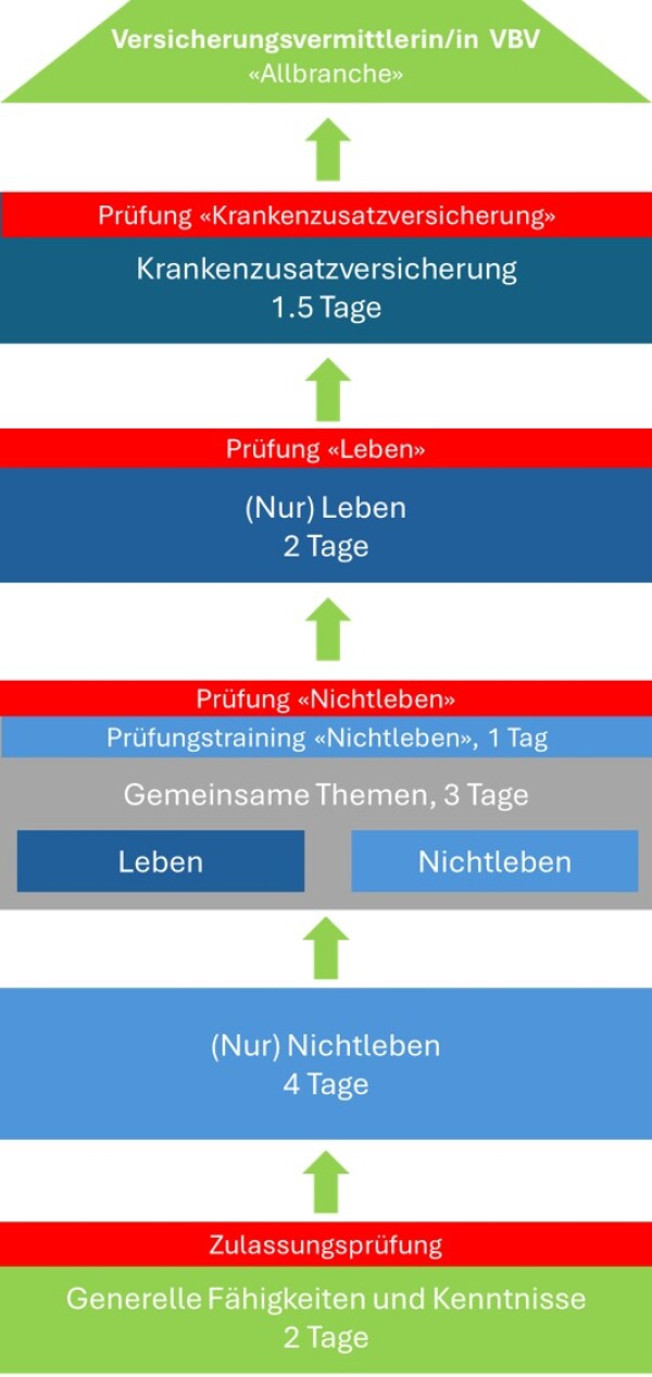 Die VAG-Zulassungsprüfung spiegelt das gesetzliche Minimum an Wissen und Können für die Versicherungs- und Vorsorgeberatung in der Schweiz. Die Qualifikationsprofile entsprechen dem Bildungs-Mindeststandard und sind von der Eidgenössischen Finanzmarktaufsicht (Finma) und vom VBV-Branchenregister als Kenntnisnachweis für die Registrierung als Versicherungsvermittler/in anerkannt.